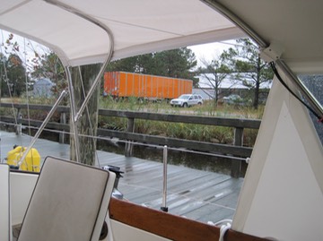 CA invented a rain fly. She made the first one for the starboard side. We finally tested it in this morning's rain.