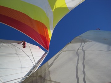 We did tolerably well. We flew the mizzen stays’l, something we are finally able to rig without too much drama. It adds some speed when we’re off the wind and the breezes are light.
