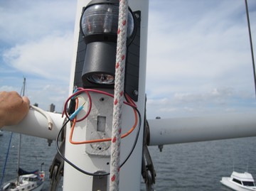 In the picture, you can see the old space where the light used to be. There’s a special-purpose pad welded to the mast just for the old light.