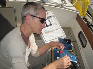 One of the first pieces of safety equipment we bought for Red Ranger was a Life Sling 2. It’s a tidy container with hook and loop strips (Velcro™) that fastens neatly to the taffrail or lifeline somewhere.