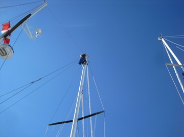 That leaves just the 56’ of wire going up the mast as the likely cuplrit. They decided that perhaps they could continue hanging and all-around white light from their mizzen rather than use the mast-head all-around white light.