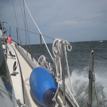 We thought we had prepped for sailing. A few things had come loose and were slamming around below decks. CA was too sea-sick to go below. Indeed, she was too sea-sick to steer while I went below.