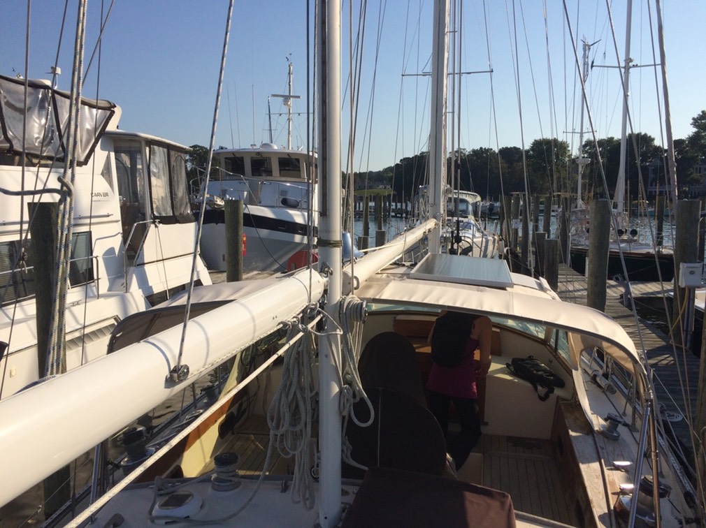 When not cleaning, CA’s been rearranging the V-berth to optimize the space. When we lived aboard before, we jammed a lot of stuff in there that we “might” need. After two years, there are things in there that we never touched. They can go, now.