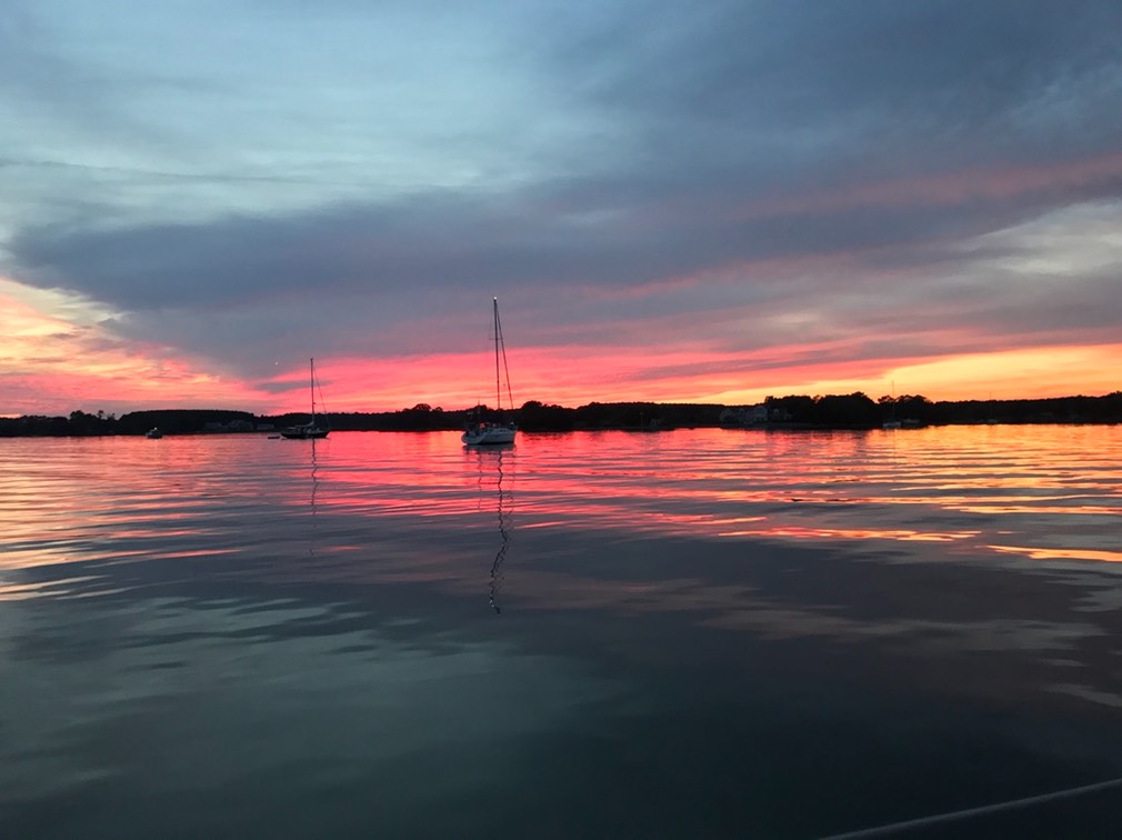 We learned a number of useful lessons. First, we need to watch out for double-booking our weekends. We missed sailing Monday morning because we had a schedule. Second, we need to be sure our hors d’oeuvres are scalable from one boat to many boats. Cindy Ann has an idea for multi-part hors d’oeuvres. I’m hoping for some test-flights. Third, I realized that while it’s still technically summer, the nights can be chilly and my fleece socks need to be kept on the boat.