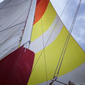 We started the day with a relatively simple Yankee-Mainsheet until the wind was clearly past the 17kn threshold. While we could reef the main, I prefer to drop the main entirely, and raise the mizzen. Since the winds were building and projected to keep building, jib-and-jigger seemed more prudent.