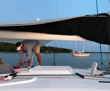 We learned a number of useful lessons. First, we need to watch out for double-booking our weekends. We missed sailing Monday morning because we had a schedule. Second, we need to be sure our hors d’oeuvres are scalable from one boat to many boats. Cindy Ann has an idea for multi-part hors d’oeuvres. I’m hoping for some test-flights. Third, I realized that while it’s still technically summer, the nights can be chilly and my fleece socks need to be kept on the boat.