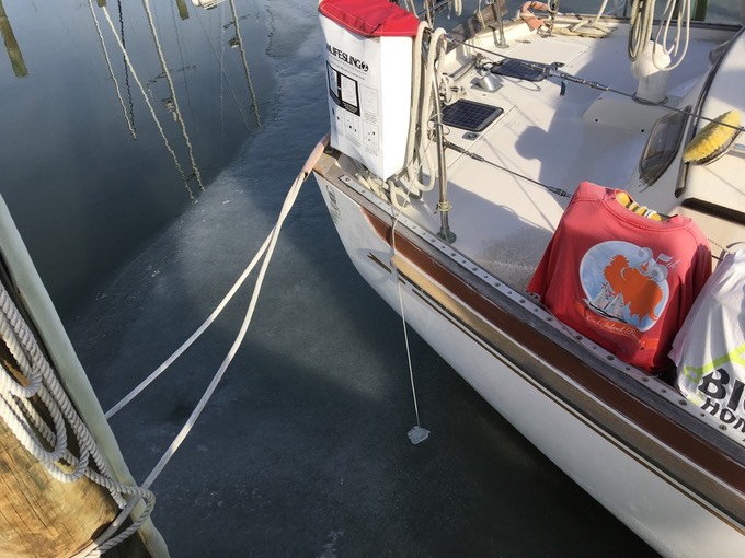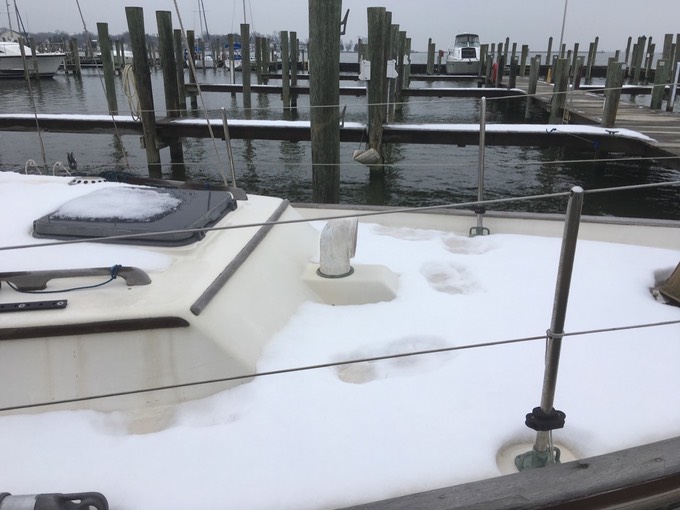 It’s not going to freeze solid. If we were hauled out in some place like Duluth, then we’d have to worry very seriously about residual water anywhere in the hull. We’re in a creek in Chesapeake Bay: the historical low for January is 4°C. No risk of freezing solid.