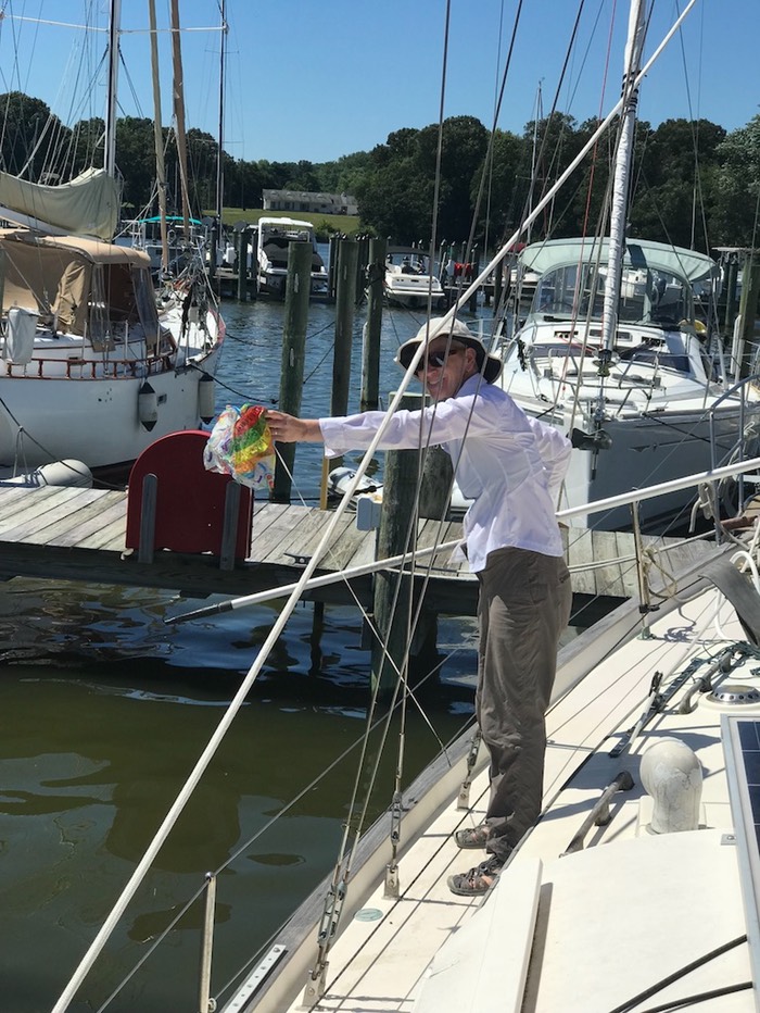 Once she removed the coil of wire, Mr. Benmar’s compass was happy. And we were happy Mr. Benmar could handle the boring job of steering for seven or so hours of motoring through flat-calm Chesapeake Bay conditions.