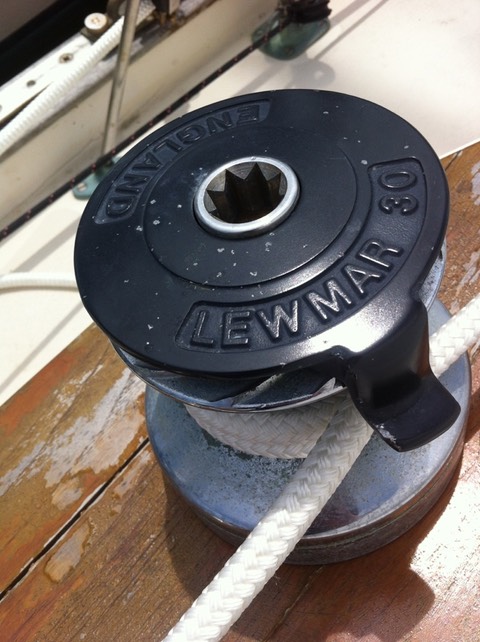 Putting in proper turning blocks for the winches was in spring 2012. Then in August of 2013, I realized the self-tailing stripper rings (the top piece on the winch) on two of the winches were facing the wrong way.