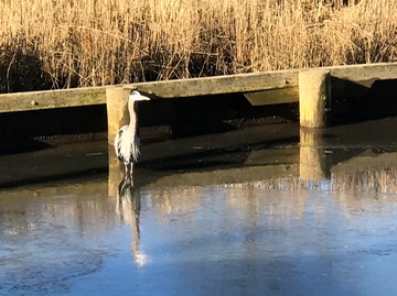 There’s a Great Blue Heron at Herrington Harbour. We’re told its name is George.