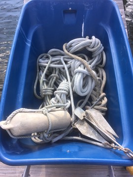 A few months ago, CA decluttered the lazarette to remove old lines we weren’t using; lines filled with mildew. She also chucked out one of the two tiny danforth anchors for the dinghy.