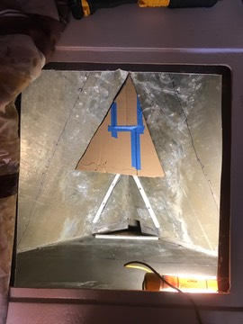 It was a little dodgy getting the supports all reasonably aligned and more-or-less “level”. It involves setting the spirit level up on the bunk to see which way we’re heeled and then moving it down inside the tank to parallel the angle of heel. While holding the board in place. While worrying about the height. While squatting on the aluminum.
