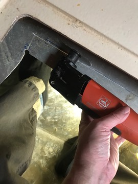 I looked at using the reciprocating saw from underneath, but the blade would collide with the fiberglass structure above the tank and that would be very, very bad for saw control and blade life.