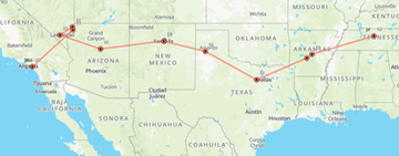 Here’s the journey from Nashville to LA. (The first bits from McLean to Nashville involve me not having working batteries in the SPOT tracker.)