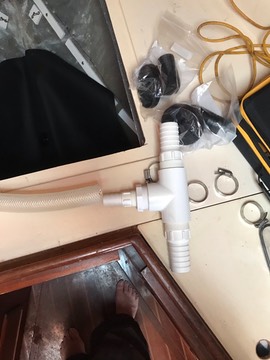 I capped one side of the T fitting. Built the “drawing” lines to take water from the bladders to the fresh-water system.