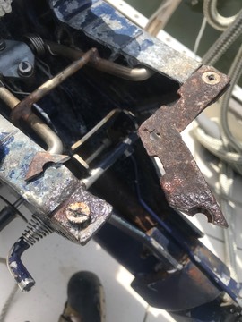 Finally. The Outboard Bracket. See Labor Day, last year for the start of this job. I replaced part of the ancient rusty bits of the bracket.