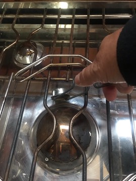 It can be corrosion on the little electrical elements in each burner. Cleaned them. This wasn’t easy: a little bit of spilled whatever can be baked into the components so it sets up like epoxy. I hate to apply too much force to get things apart: most of a Force 10’s top is a beautiful sheet of stainless to keep food away from the gas tubes and wires. The burner elements themselves are pretty robust, but those are machined precisely to give a good gas-and-air mixture.