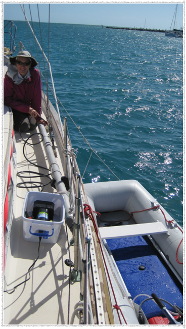 After sight-seeing on the reef, she wanted to clean the barnacles off the propellor. That was goin well until a shark showed up. It was a very small shark. But it’s was hanging out in the shadow under Red Ranger. A rather alarming thing to see when you’re just innocently scraping barnacles.