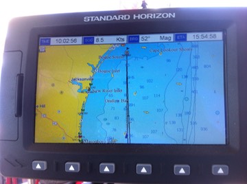 On the 26th, the morning wind was perfect — again — for banging along at well over 8 knots. Occasionally. It’s rare enough that I took a picture of it.