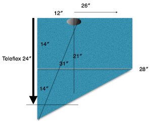 The vertical 21″ line shows the depth when I drop a stick straight in. The sloping 31″ line shows the depth when I slide the stick down to the deepest part of the tank.