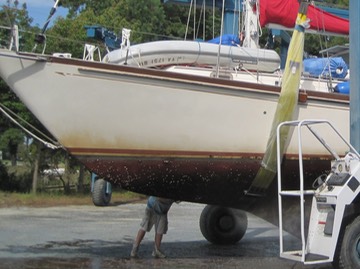 Since we have a half gallon of Pure Oceans Hull Cleaner, we’ll probably use that next time, too. Then we’re probably going to switch to The Works. We’re told it doesn’t require two passes; we should have started with that, not finished with it.
