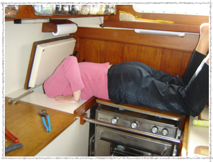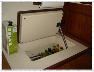 The fridge can be driven by 110V shore power. We have this. We never used it, and can’t see the point. It’s a bunch of wiring and plumbing and another compressor. Some folks swear by using a gasoline-driven AC generator to run this compressor. Some folks don’t like carrying all that gasoline. But we already carry gasoline for the dinghy. Back and forth; pro and con. We don’t like the complexity.