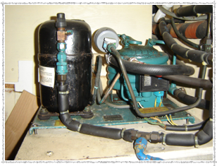 The fridge compressors can be driven directly by the engine. We have this. We’re taking it out. It’s a mandatory 45 minutes of engine time (3/4 gallon of diesel) per day to freeze the three holding plates (one in the fridge, two in the freezer.) At $4.00 per gallon, that’s $3/day, $90/month. It’s also a bunch of engine parts and plumbing.